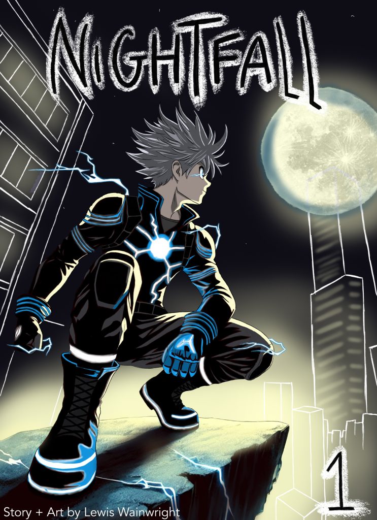 The third cover I created is titled “Nightfall” and its genre is supernatural/ action. It’s about a high school student called Hiro who is a regular student during the day and by ‘Nightfall’ he’s a superhero with electric powers who saves the world without anyone knowing by destroying countless enemies that keep appearing out of nowhere. The cover has a very mysterious vibe and very dark tones with the moon shining light on everything. The detailed glow effect is very eye catching and people will appreciate the level of detail put into it.