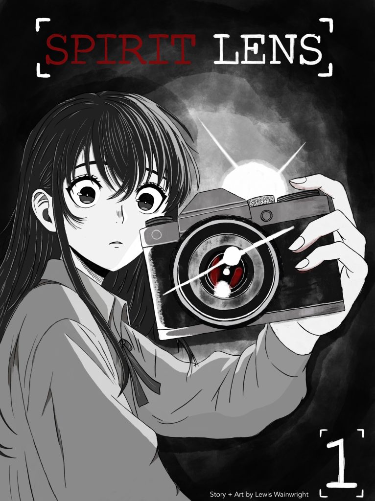The second cover I created is titled “Spirit Lens” and its genre is horror/ psychological thriller. It’s about a university student called Shizuka who gets gifted a camera from her grandparents which gives her the ability to see spirits of dead people when looking through the lens. This then causes her to experience many problems and can’t seem to get rid of the camera. The cover has been stylised in a black, white and red colour scheme. This creates an eerie tone on the cover and the facial expression shows fear in her eyes. The title includes a camera inspired border and the red on the title I feel highlights the red in the camera lens which is there to symbolise the spirits, so it’s hard to notice at first.