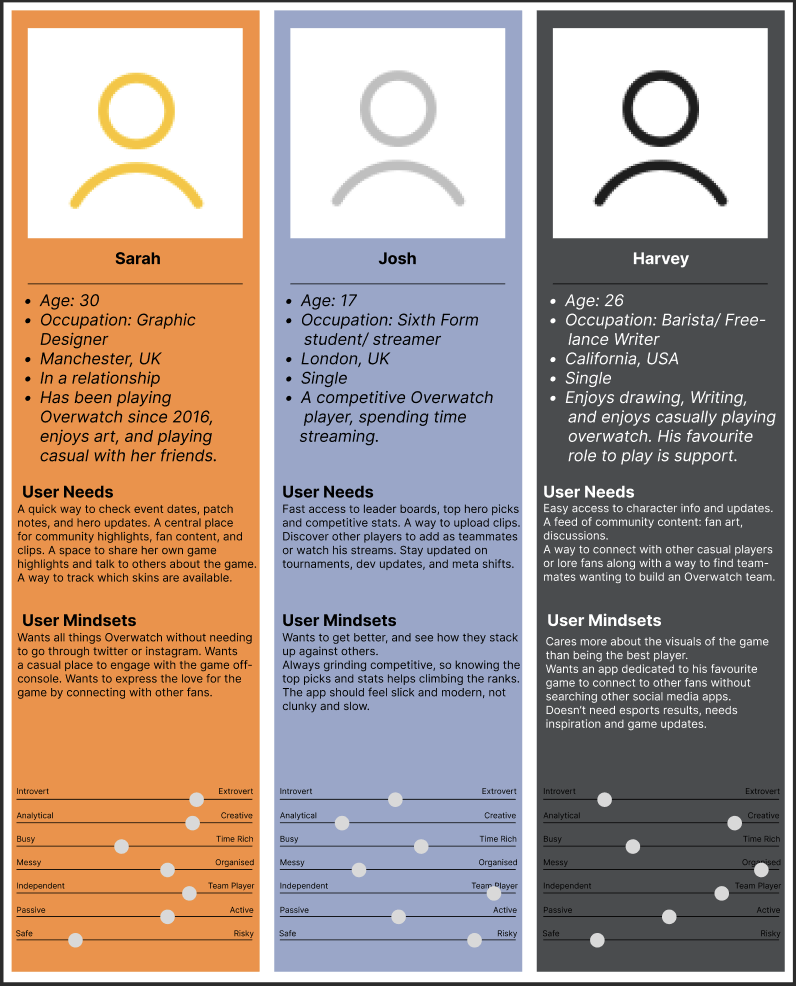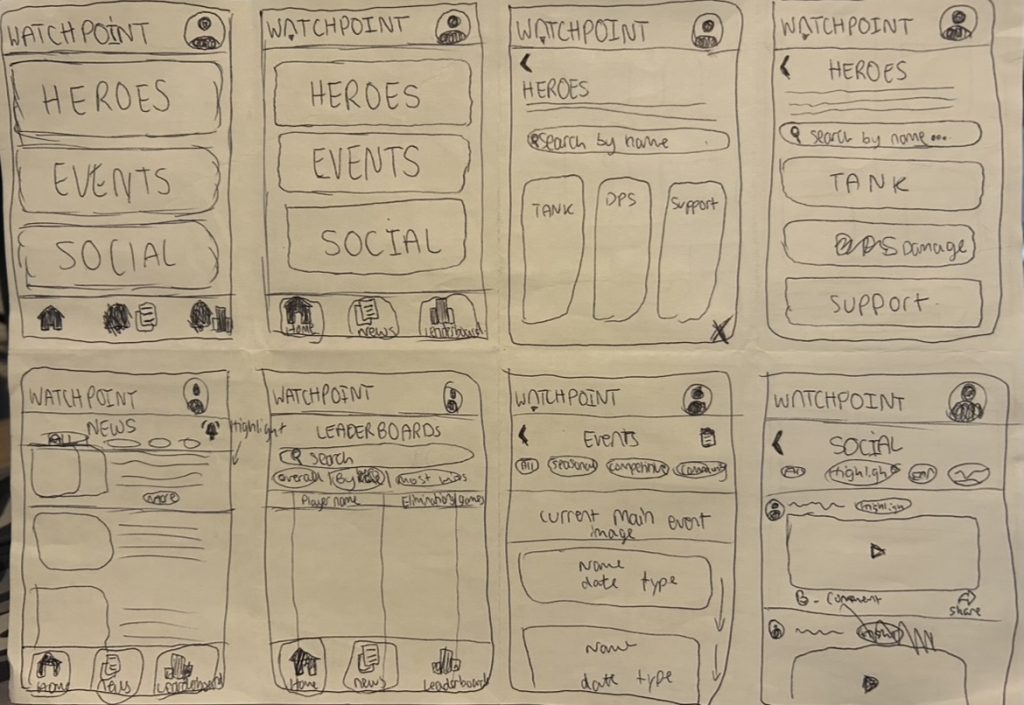 All of my ideas were based off my own knowledge and experience of Overwatch, with a strong focus on how the game could be as a social companion experience. I considered what kind of content players might want to see, from highlights and stats to events and community interaction.