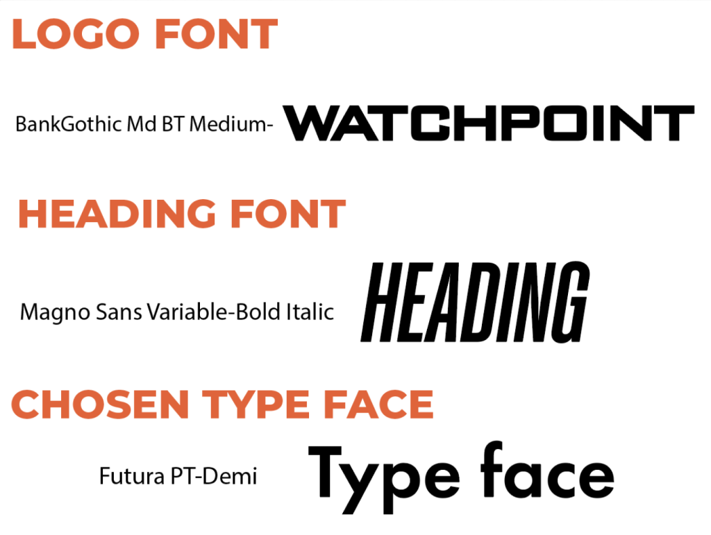 The logo for Watchpoint is a custom font I designed using the BankGothic Md BT Medium font which is the one Overwatch’s logo is made from. The logo was created in Adobe Illustrator, allowing me to fine-tune the spacing, angles, and layout to closely match the bold futuristic feel of Overwatch’s branding. The result is a logo that feels instantly familiar to fans of the game, helping reinforce the app’s authenticity and connection to Overwatch.