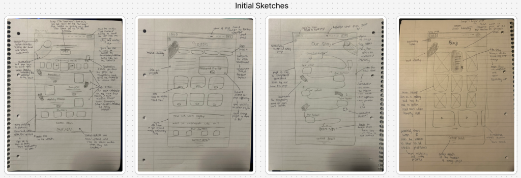 Throughout these initial layouts, I focused on creating a smooth user flow that leads the user through the various pages and used the branding for the storytelling, guiding the users along the way while creating a warm and welcoming tone. These wireframes set the foundation for my mid-fidelity prototype, where I refined spacing, alignment, layout consistency, and interactive elements.