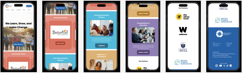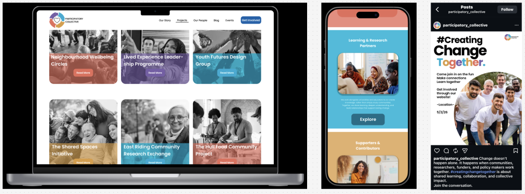 This identity translates effectively across platforms. The mobile homepage maintains the same tone and structure as desktop, with slightly larger visuals to support touch interaction. On social media, particularly Instagram, the branding remains consistent through colour, typography, and the use of the secondary badge logo, creating a welcoming and inclusive presence that aligns seamlessly with the website.